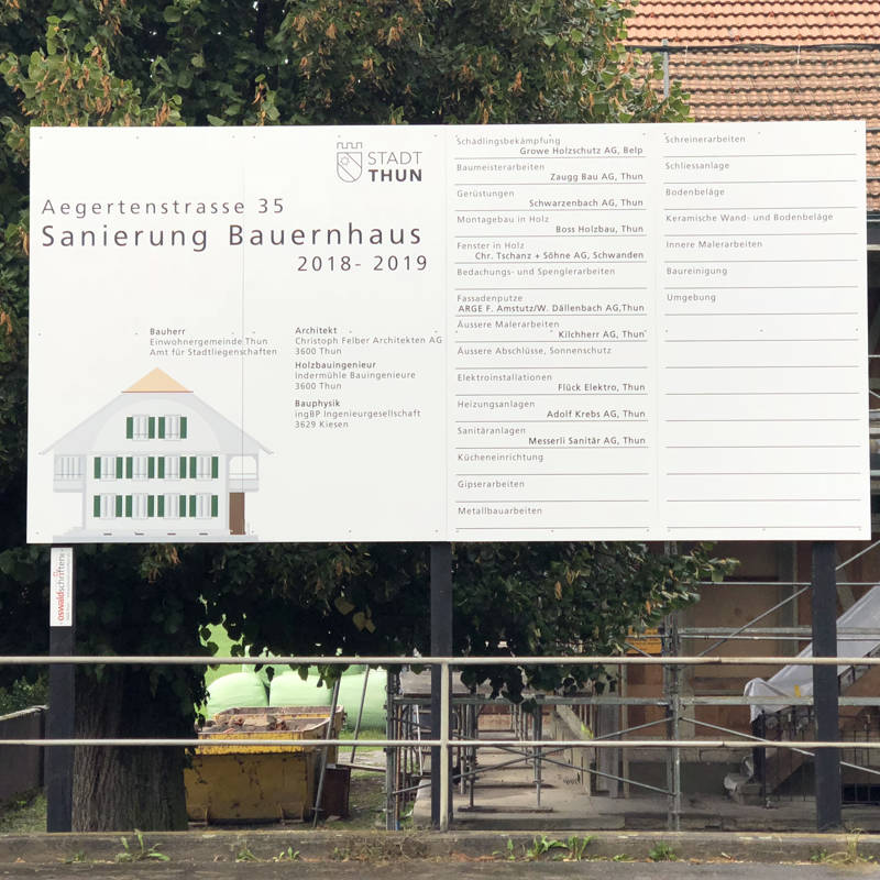 Wer baut oder bauen lässt, kann stolz sein – zu Recht. Zeigen Sie dem Betrachter, was hier entsteht. Mit einer hochwertig gestalteten Baureklame, fachkundig bedruckt und sorgfältig aufgestellt oder angebracht.