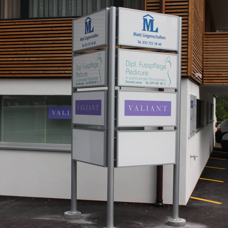 So finden Kunden und andere VIPs den richtigen Weg – zum von Ihnen definierten Ziel. Oswald Schriften ist Experte für wetter- und lichtbeständige Aussen- und Wegebeschilderung sowie Leitsysteme in Verkaufs-, Verwaltungs- und Produktionsräumen.